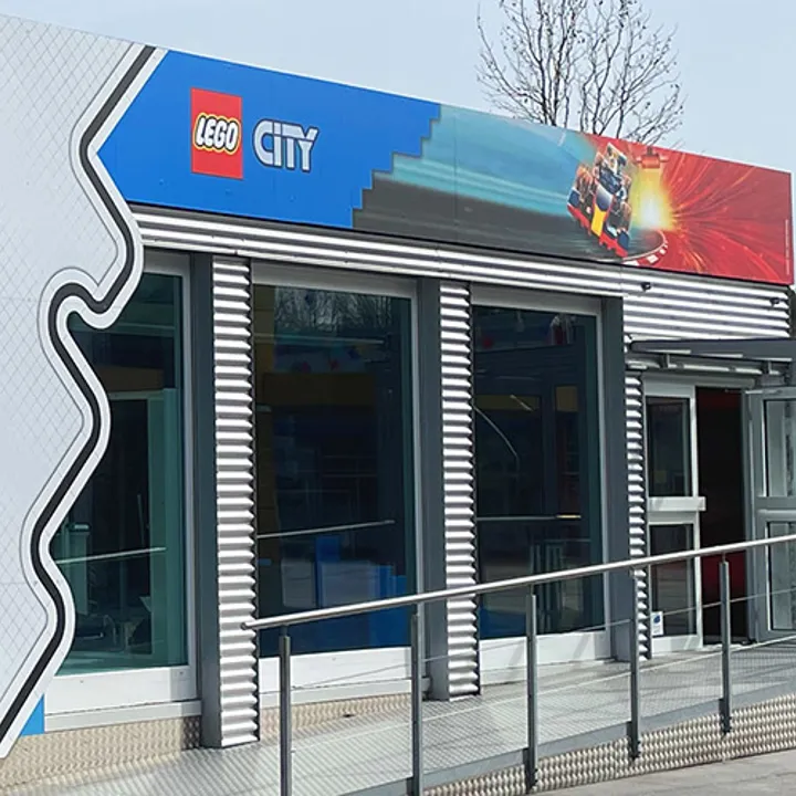 VSTUPNÍ OBLAST upozorňuje na LEGOLAND® Německo už z dálky vlajícími praporky.