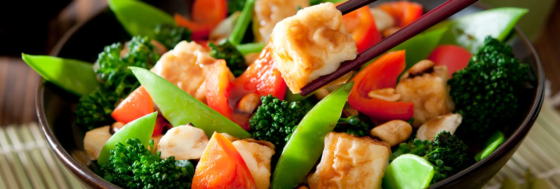 Pochutnejte si na našich lahodných a zdravých specialitách z wokové pánve, u nichž přísně dbáme na používání čerstvých surovin. Naši nabídku doplňují křupavé kuřecí nugety, jarní závitky a lahodný asijský ovocný salát. Při přípravě samozřejmě nepoužíváme žádná barviva, konzervanty ani zvýrazňovače chuti.