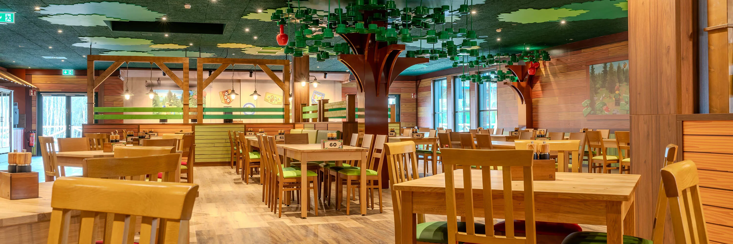 Welcome to the "Hungry Bear" at the LEGOLAND® Forest Adventure Lodge™ - gather around the huge LEGO® campfire for a delicious family meal in the fancifully decorated à la carte restaurant! Choose from a range of scrumptious specialities - be prepared to be surprised!