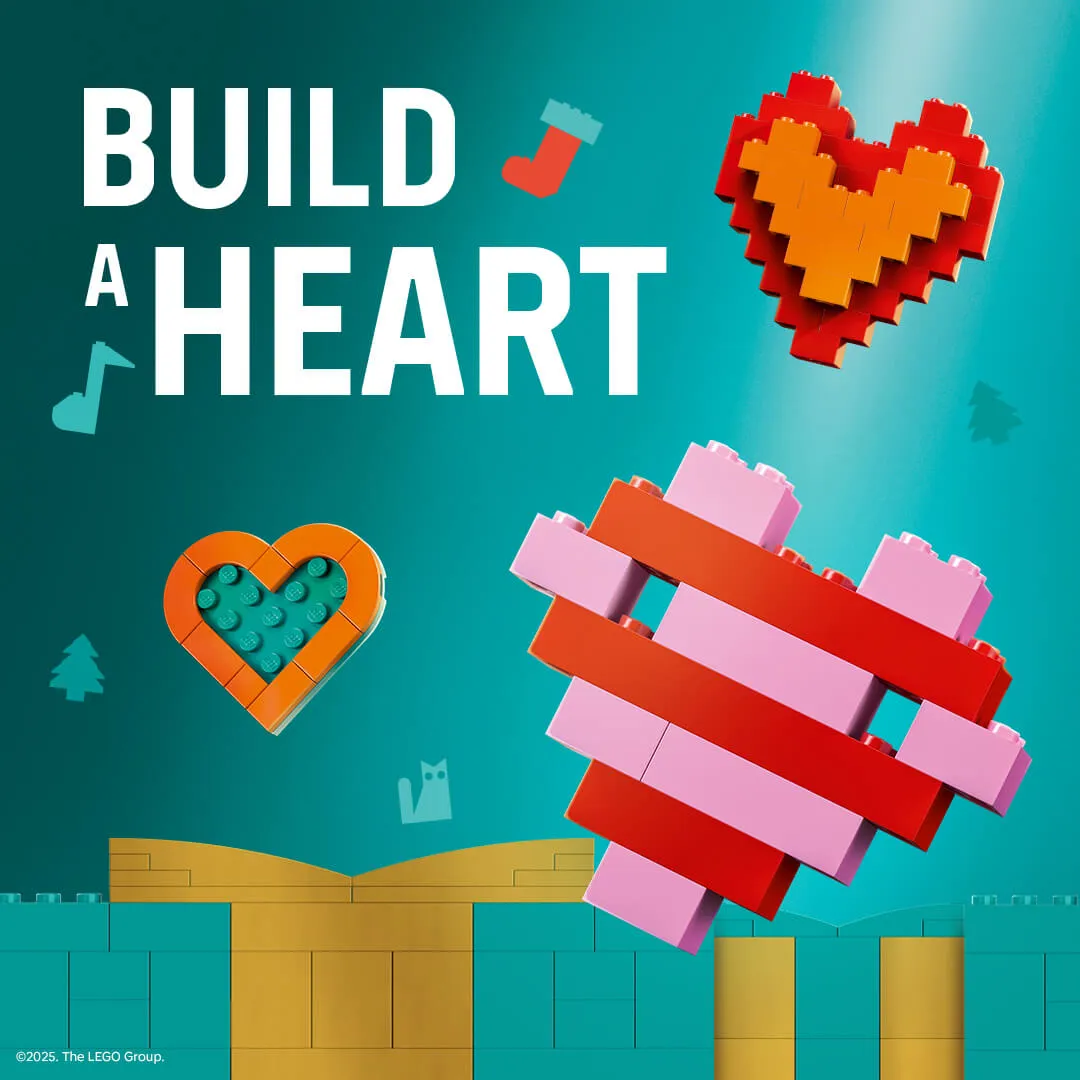 During the winter opening days, you can build LEGO® hearts in “Rebuild the World”. Then share a photo of your built hearts on social media with the hashtag #BuildToGive. For every heart you build and post, LEGO will donate a set to children in need to help them play this holiday season. ❤️