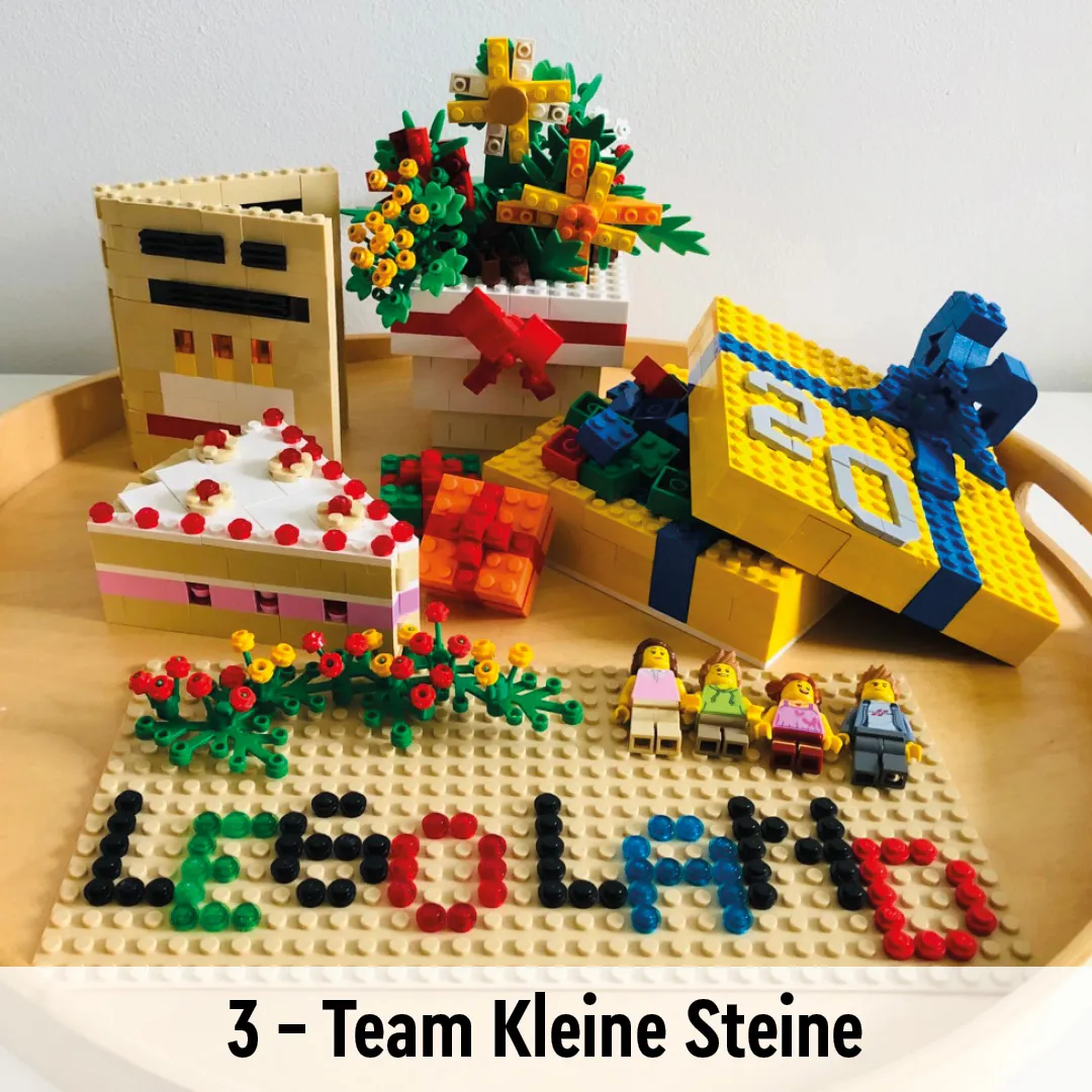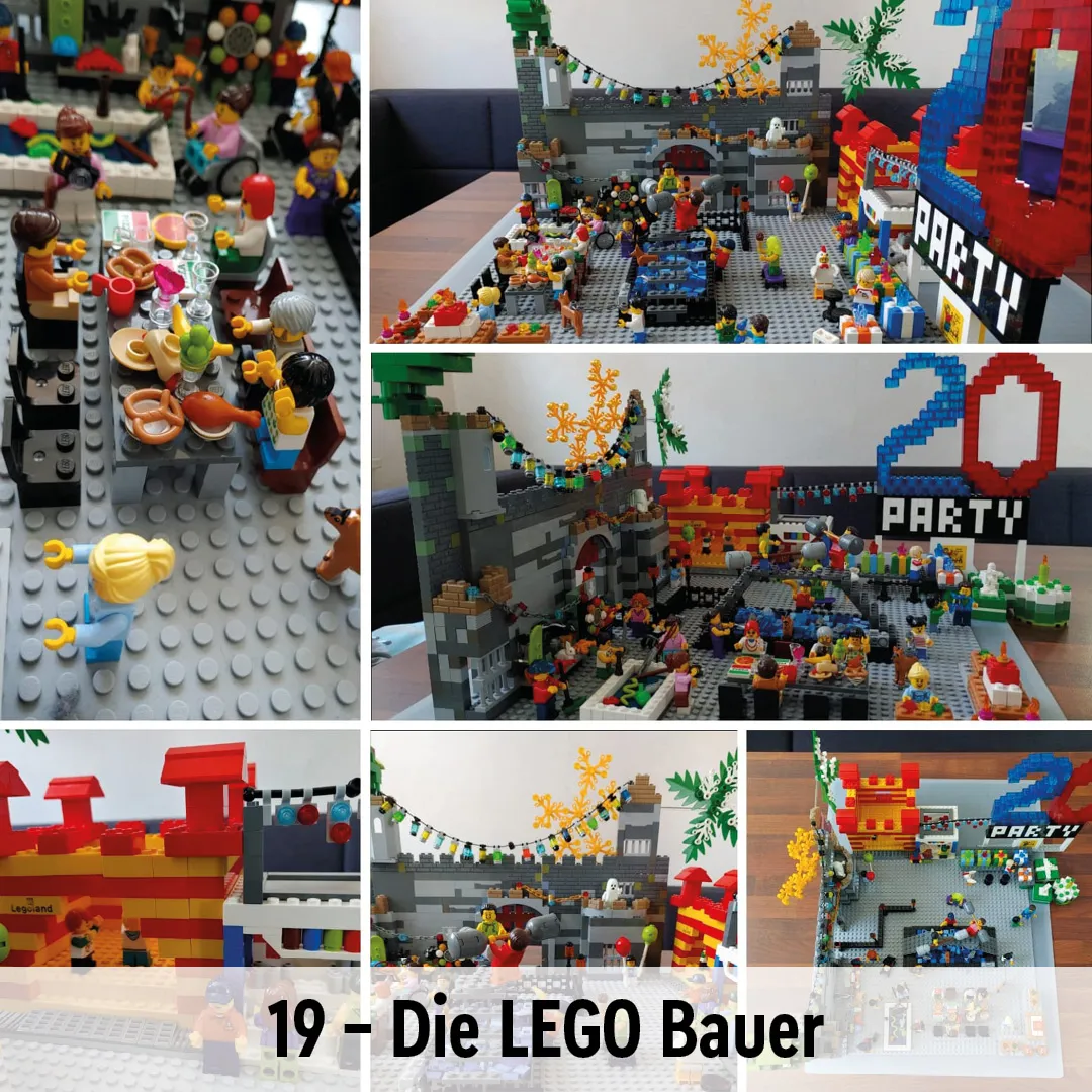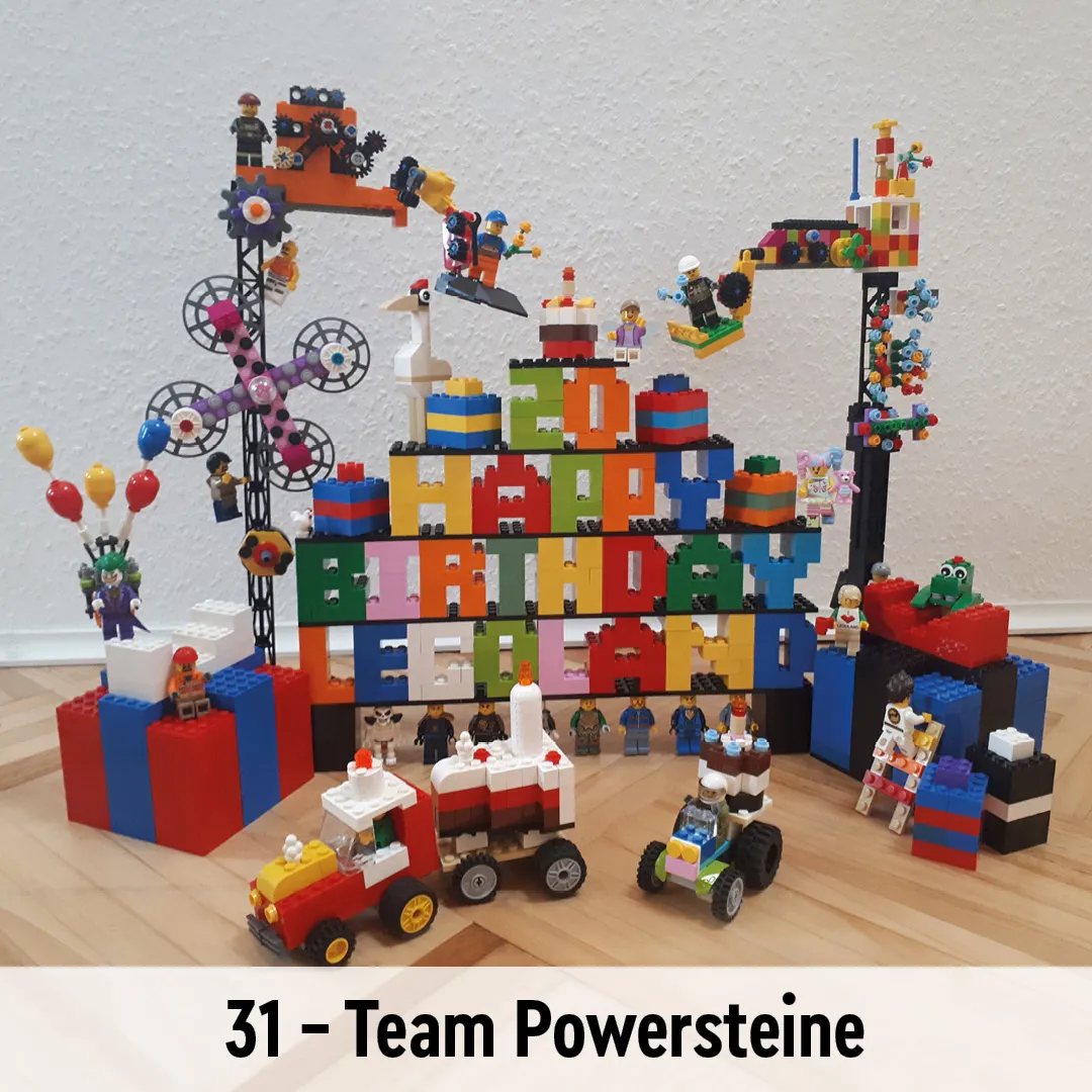 - Die Top 20 ziehen in die zweite Baurunde ein und erhalten dafür ein LEGO Set mit jeweils über 5.500 Teilen. Die restlichen Teilnehmer, die mit einem Bild auf unserer Website vertreten waren, bekommen eine kleine LEGO Überraschung zugesandt.