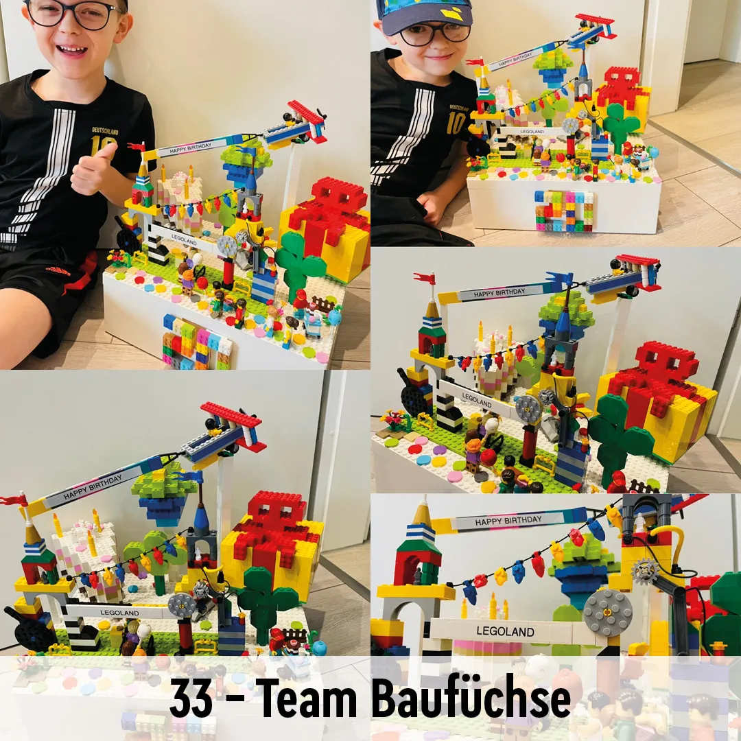 - Bis zum 23. Januar 2022 muss eure LEGO Geburtstagsüberraschung fertig sein. Schickt uns spätestens bis zu diesem Tag EIN Foto des fertigen Modells (bestenfalls quadratisch) an bauwettbewerb@LEGOLAND.de. Wir können nur ein Bild auf unserer Website berücksichtigen, mehrere Bilder könnt ihr in einer Collage zusammenfassen. Ihr dürft gerne auch mit auf dem Foto sein - wenn ihr das Bild an uns schickt, erklärt ihr euch automatisch damit einverstanden, dass wir das Bild gemeinsam mit eurem Teamnamen veröffentlichen dürfen.