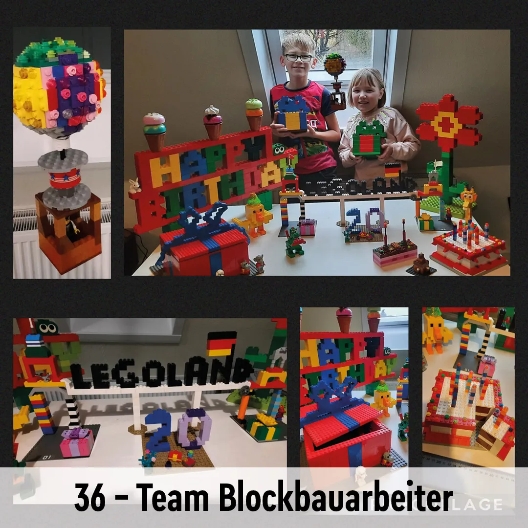 Das waren die Top 20 Einsendungen aus Runde 1 zum Motto „Das LEGOLAND® Deutschland wird 20 – Baut uns eine Geburtstagsüberraschung!“: