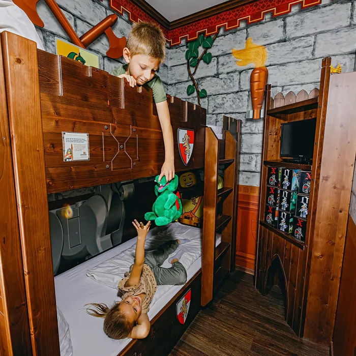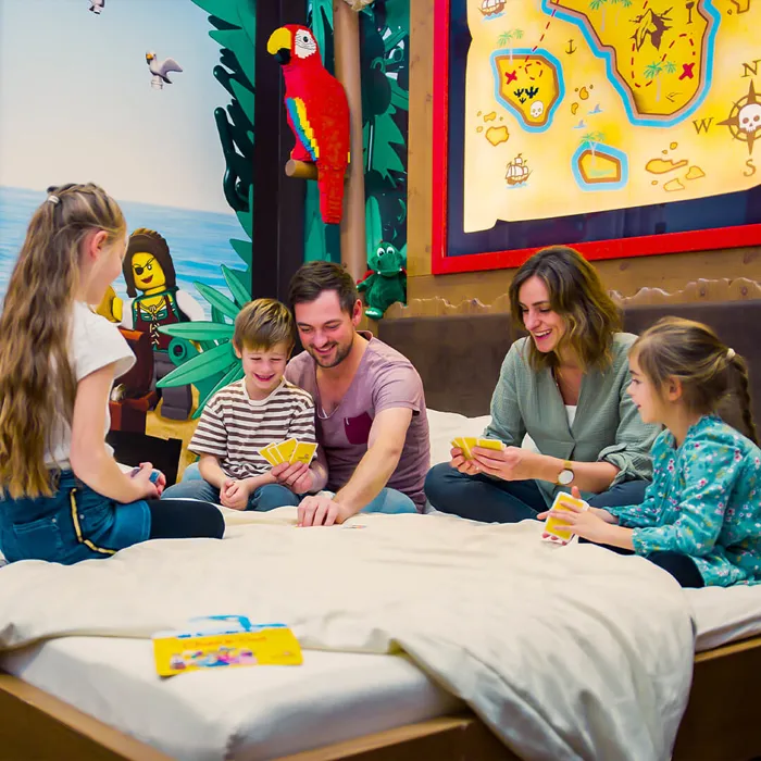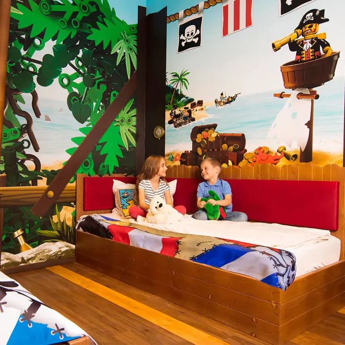 Spędź noc w naszych pokojach superior w zamkach lub w hotelu Pirate Island i ciesz się komfortem przestronnych pokoi z dużą ilością miejsca dla całej rodziny. Aby zapewnić dodatkową dawkę rozrywki przed snem, konsola do gier Nintendo Switch z grą Mario Kart 8 Deluxe jest dostępna wyłącznie w tej kategorii pokoi.