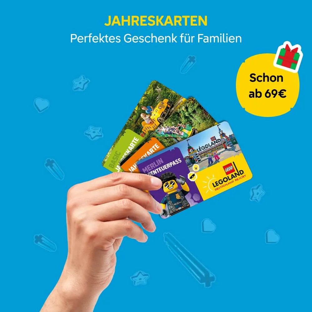 - LEGOLAND Jahreskarte Basic: 1 Jahr freier Eintritt ins LEGOLAND Deutschland (während der regulären Saison; abzgl. Ausschluss-Tage)