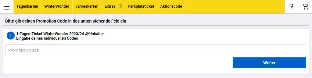 HINWEIS: Bitte beachtet, dass ihr den Barcode eurer Jahreskarte nur einmalig verwenden könnt, also für den Kauf eines "WinterWonder 1-Tages-Ticket für Jahreskarten-Inhaber" ODER für den WinterWonder Pass. Ihr könnt vor Ort im Jahreskartenbüro vom WinterWonder 1-Tages-Ticket auf den Pass upgraden. Ihr zahlt lediglich den Differenzpreis in Höhe von 9 Euro.