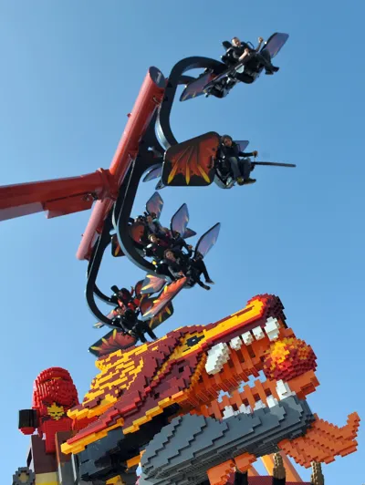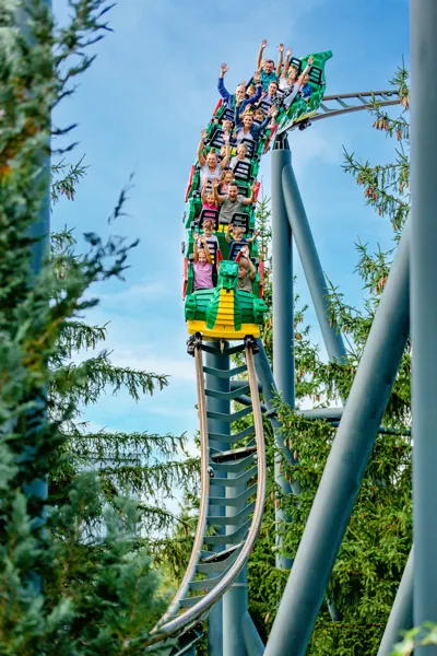 Von einem Roboterarm durch die Luft gewirbelt werden oder auf dem Rücken des Feuerdrachen durch das LAND DER RITTER sausen: Die rasanten Achterbahnen und actionreichen Fahrgeschäfte des LEGOLAND Deutschland Resorts versprechen Adrenalin pur!