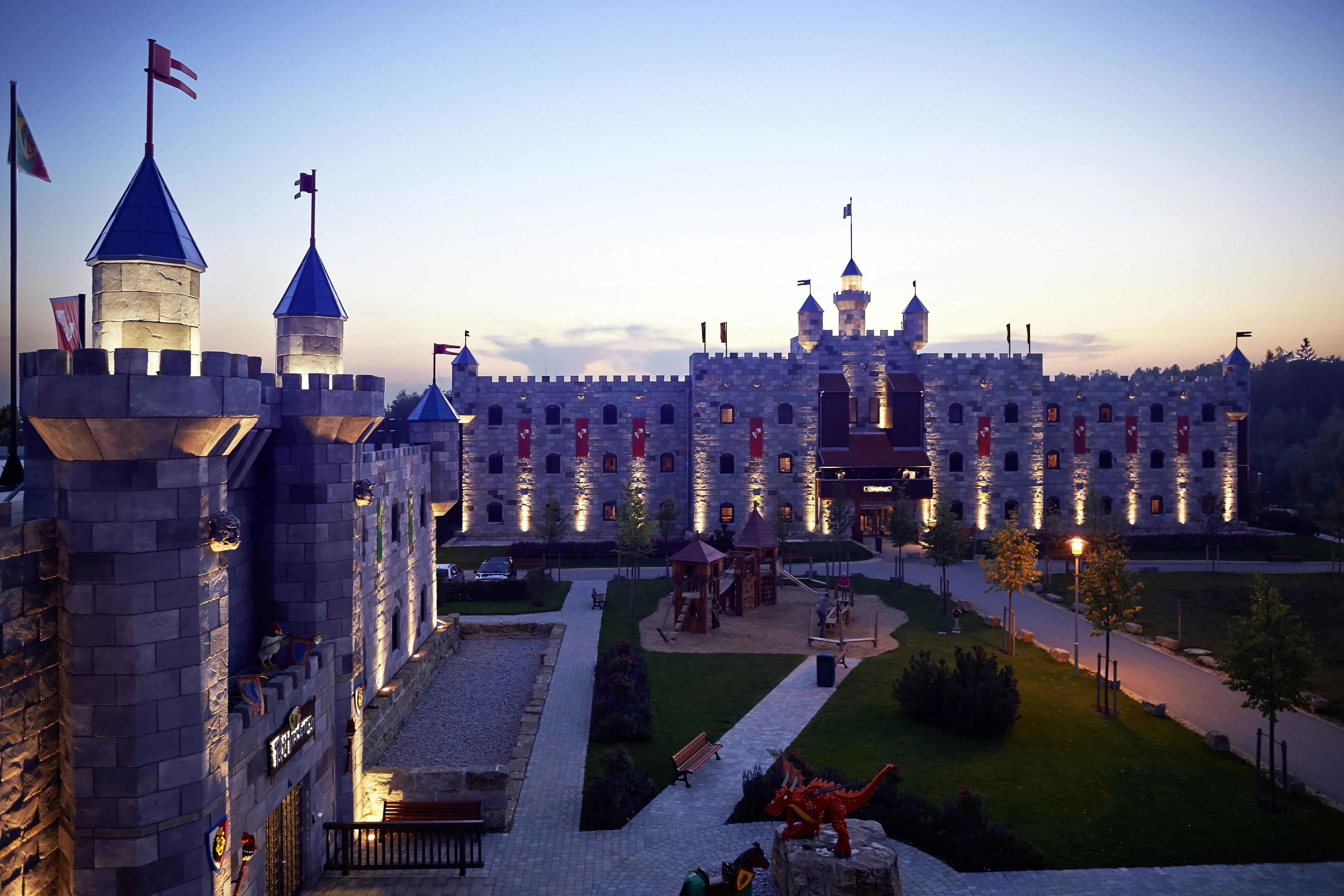 Nach Parkschluss geht das Abenteuer im LEGOLAND® Feriendorf weiter: Das einzigartige Pirateninsel Hotel, drei königliche Burgen, liebevoll thematisierte Häuser sowie Campingfässer und ein Campingplatz laden zur Übernachtung nach einem aufregenden Parktag ein.