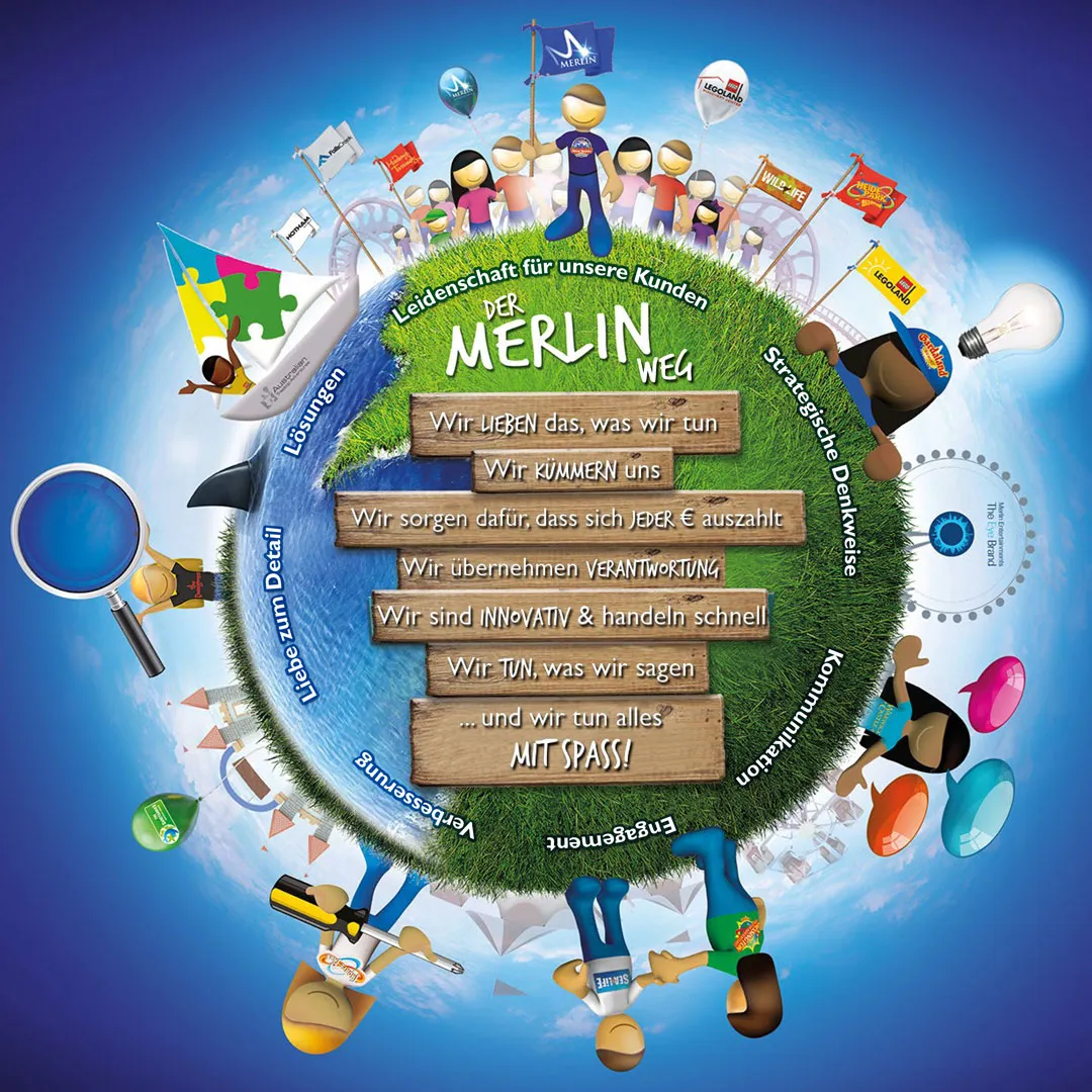 Die Merlin Gruppe betreibt unter anderem folgende Attraktionen: Madame Tussauds, The EDF Energy London Eye, Dungeons, LEGOLAND Discovery Centres, SEA LIFE, LEGOLAND Parks, Gardaland, Alton Towers Resort, THORPE PARK, Chessington World of Adventures, Heide Park Resort, Warwick Castle u.v.m.. All diese Marken sind einmalig, faszinierend sowie innovativ und haben ein großes Wachstumspotential.